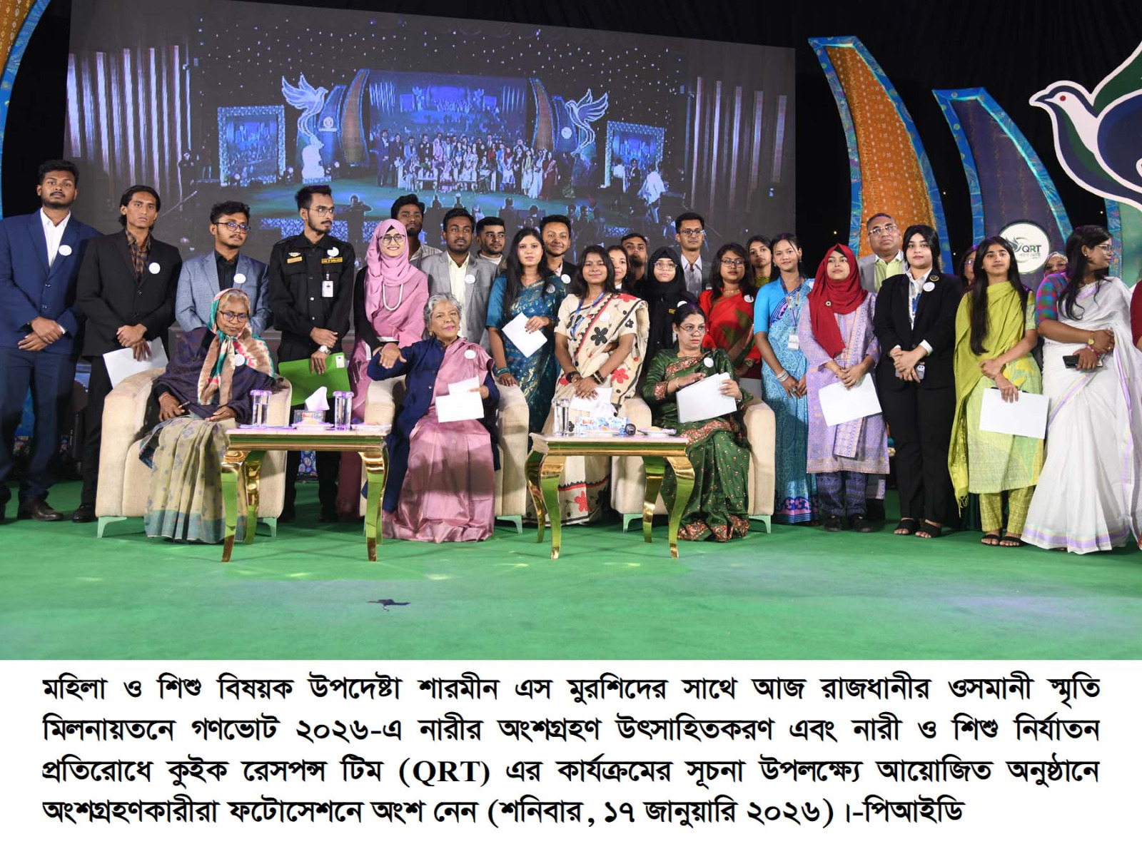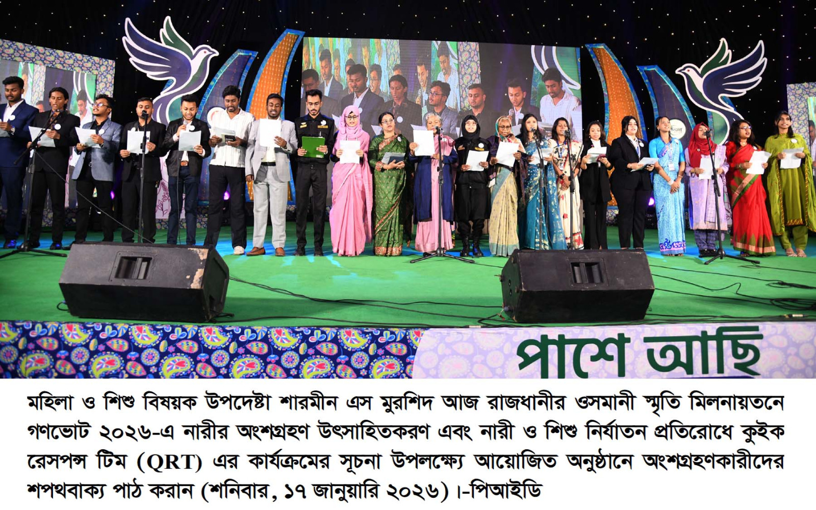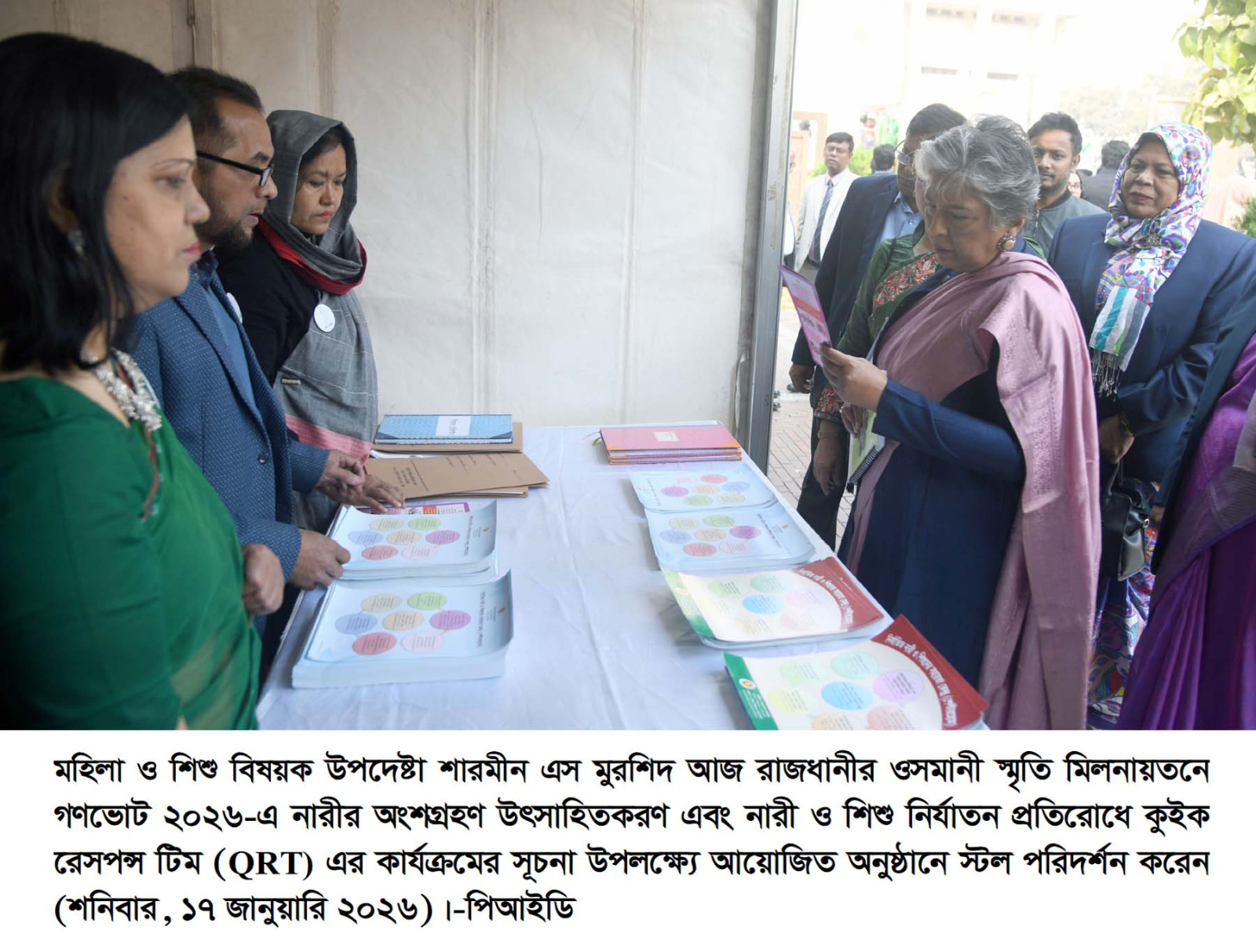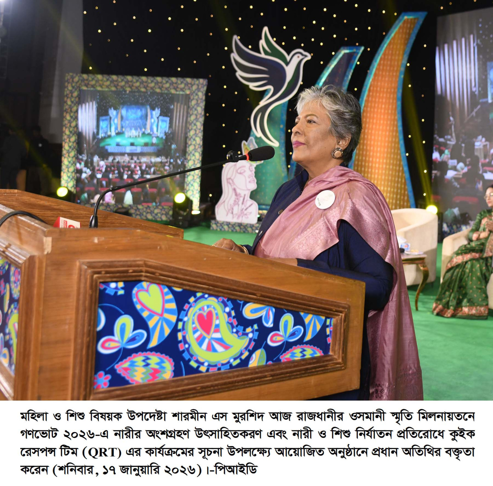 তিনি আজ ঢাকায় ওসমানী স্মৃতি মিলনায়তনে মহিলা ও শিশু বিষয়ক মন্ত্রণালয়ের উদ্যোগে ত্রয়োদশ জাতীয় সংসদ নির্বাচনে একসঙ্গে অনুষ্ঠিতব্য গণভোটে ২০২৬ এ সর্বস্তরের নারীর অংশগ্রহণ উৎসাহিতকরণ কেন্দ্রিক